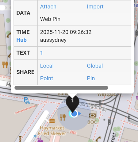 pin will be added on the map, unless the Text menu is accessed by clicking on a Location Pin -> Attach -> Text.