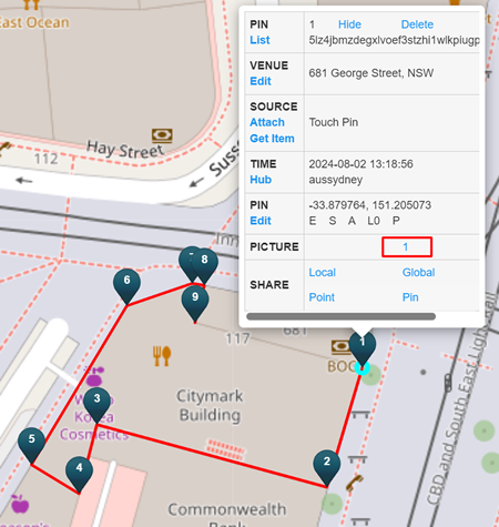 - Delete: This button deletes the photo taken, but the web pin will remain on the map.