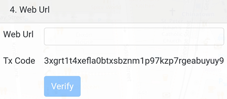 By inserting the Tx Code into the index.php of a Web URL, the ownership of that website can then be verified.