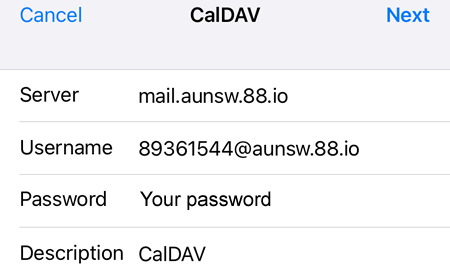 89361544@aunsw.88.io. If the Server is not detected, please enter https://mail.aunsw.88.io/SOGo/dav/89361544@aunsw.88.io/Calendar/https://mail.aunsw.88.io/SOGo/dav/89361544@aunsw.88.io/Calendar/Go back to CalDAV and click on the Save / Done button.