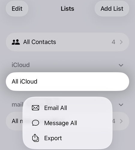 Unlike DAVx app on Android, it is not possible to add an address book on CardDAV on iOS and be recognised as an address book on Android. Only the Contacts menu allows a new list to be added. In the example below, the list name addressbook2 and the contact inside it are recognised as two different contacts (not an address book) on Android. On IOS, the contact inside addressbook2 appears in two different address books, in Contacts and addressbook2.