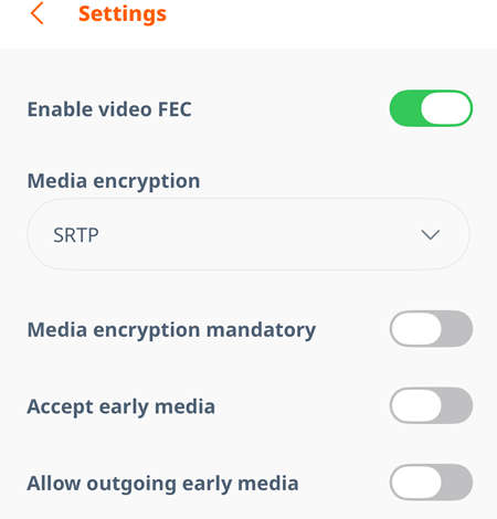 Click on Settings → Advanced Settings → Media encryption → SRTP