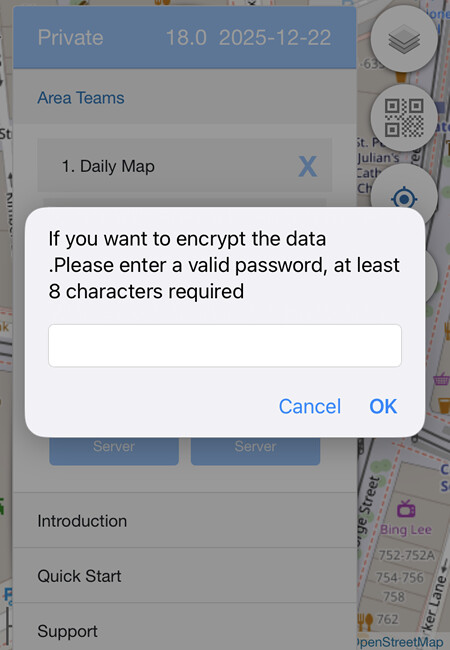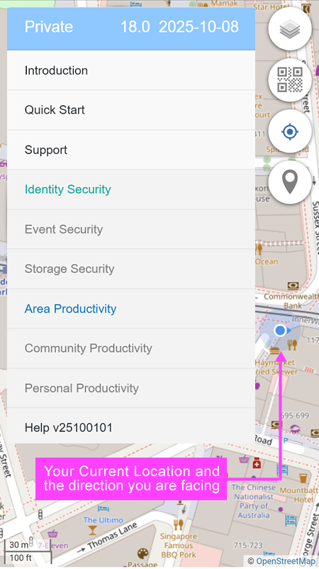 displays the App Version and current Latitude and Longitude.
