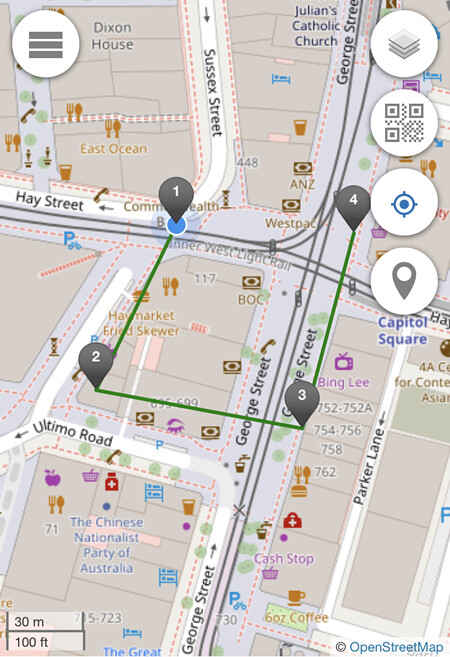 Setting the ratio is only required once by taking a photo which is 2m away from the object and the object needs to be 1m high and a line is then drawn between the object and the floor. In the example above, the object is a QR Code which is 1m away from the floor.